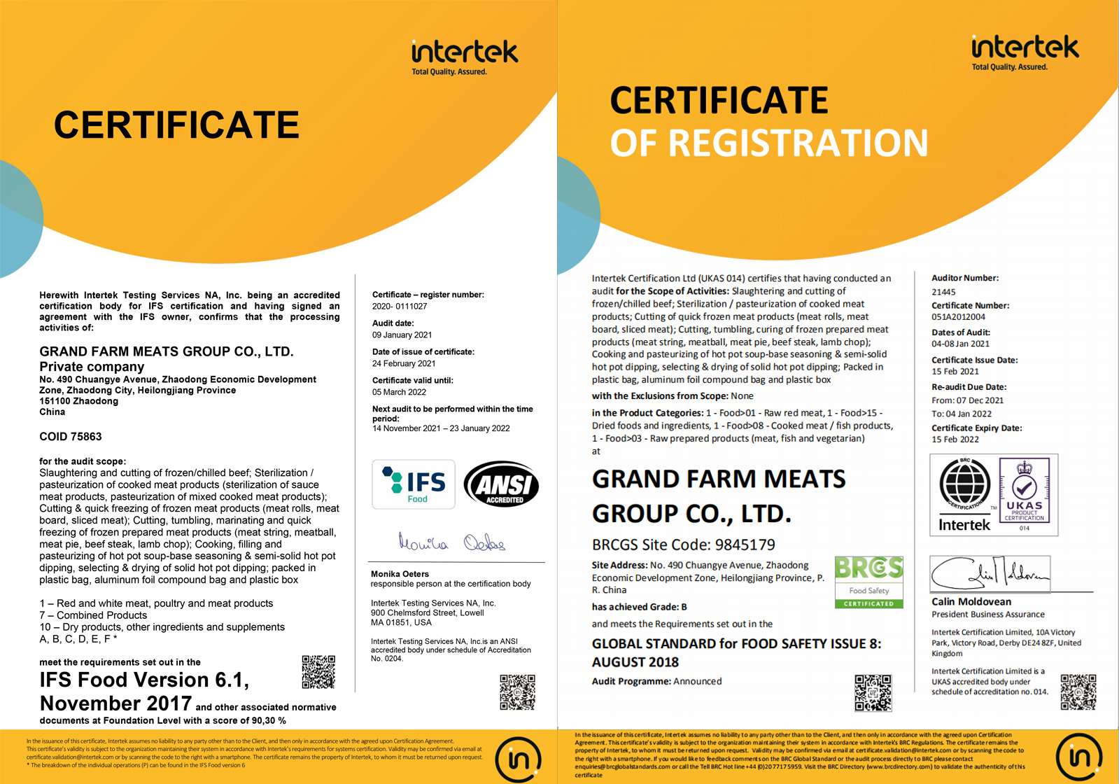 2021年1月,通過歐洲國際雙體系質(zhì)量認(rèn)證(BRCGS、IFS)。